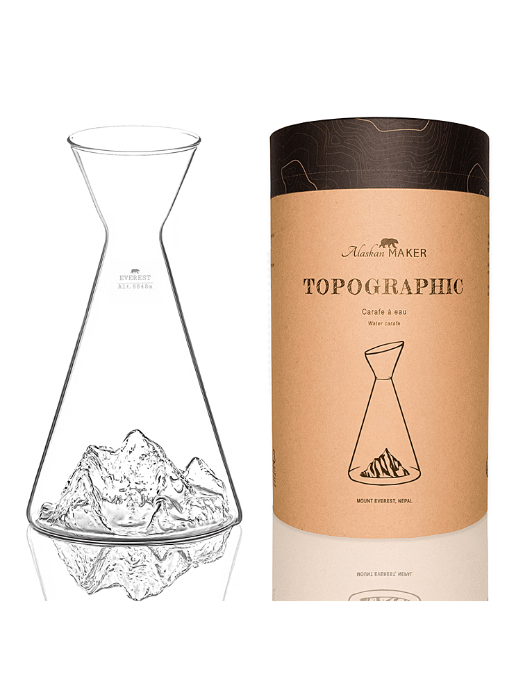 Verrijk elke maaltijd met een originele TOPOGRAPHIC-waterkaraf. Of het nu gaat om speciale gelegenheden, familiemaaltijden of gewoon een glas citroensap op een ligstoel — laat onze waterkaraf je meenemen op een reis langs de mooiste bergen ter wereld. Dankzij de vorm ligt hij prettig in de hand en is hij gemakkelijk te schenken. Geef je fantasie de vrije loop en creëer drankjes die jou plezier doen.