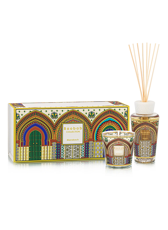 Deze geschenkset bevat de My First Baobab Marrakech-kaars en -diffuser in een duo geparfumeerd met oranjebloesem, leder en patchoeli. Een subtiele ode aan de Marokkaanse levenskunst, tussen decoratief vakmanschap en een uitnodiging tot reizen. Het perfecte geschenk voor jezelf of voor wie je liefhebt.