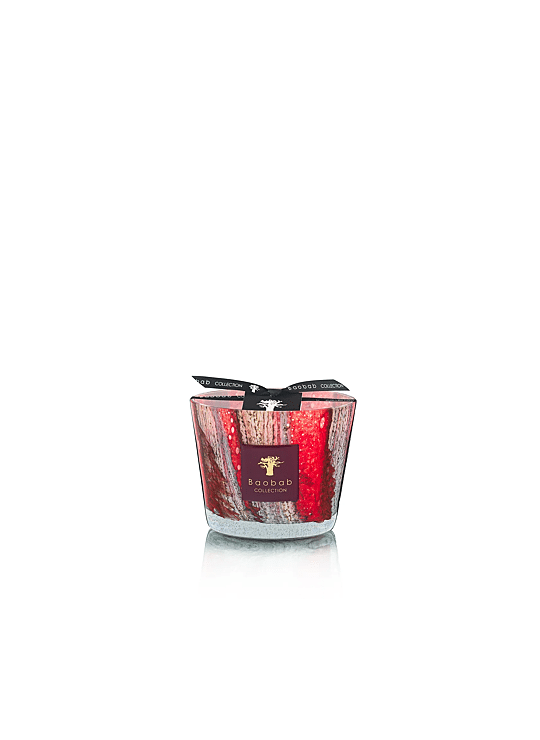 Op naar de Zwitserse grens met de geurkaars Risoud, een eerbetoon aan het grootste bos van Europa. Dit sparrenbos, tussen Frankrijk en Zwitserland, is geliefd bij vioolbouwers om zijn uitzonderlijke hout.Het glas, met een dieprode kleur die doet denken aan edelstenen, wordt verkregen door het gesmolten glas in natuurlijke pigmenten te dompelen en vervolgens te omhullen met een verticale glasdraad. Het decor komt tevoorschijn op het moment dat de kaars wordt geblazen, het resultaat van een veeleisend vakmanschap dat door de ambachtslieden wordt beheerst.