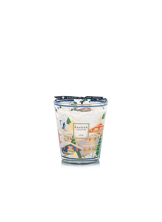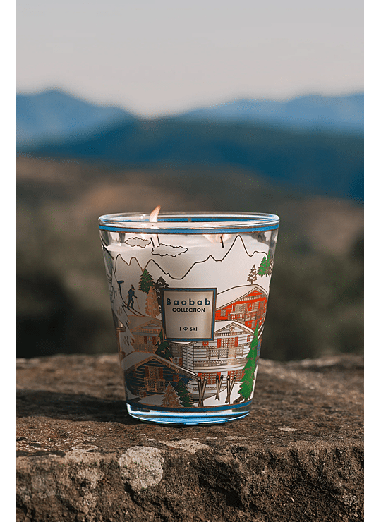 Duik in het hart van de besneeuwde bergtoppen met de nieuwe editie van de kaars I Love Ski, een elegante ode aan de alpiene wereld. Het verfijnde glas wordt gesublimeerd door een zeefdruk in goud en levendige kleuren, met een afbeelding van charmante bergchalets, gehuld in een winterlandschap. We genieten van het kijken naar de kleine skiërs op het glas, de gouden dennenbomen en de stoeltjeslift die tot leven lijkt te komen in het licht van de vlam.