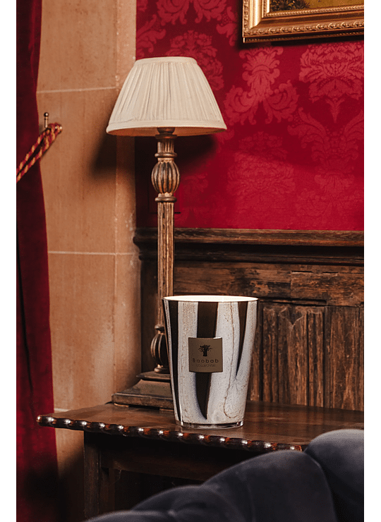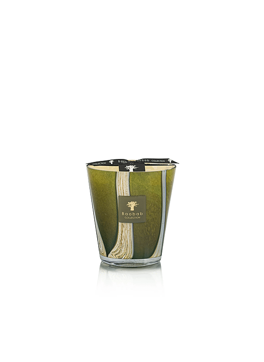 Het glas van de geurkaars Sherwood is versierd met verticale lijnen die lijken op majestueuze boomstammen die naar de hemel reiken. De kaars is diepgroen met kaki-achtige schakeringen, die variëren van bruin tot geel. Ze vangt het licht en komt tot leven met betoverende schitteringen.Sherwood Forest, bekend geworden door de legende van Robin Hood, is een wonderlijke omgeving op het Engelse platteland, waar majestueuze eiken hoog boven je uittorenen als personages uit een roman van Tolkien.