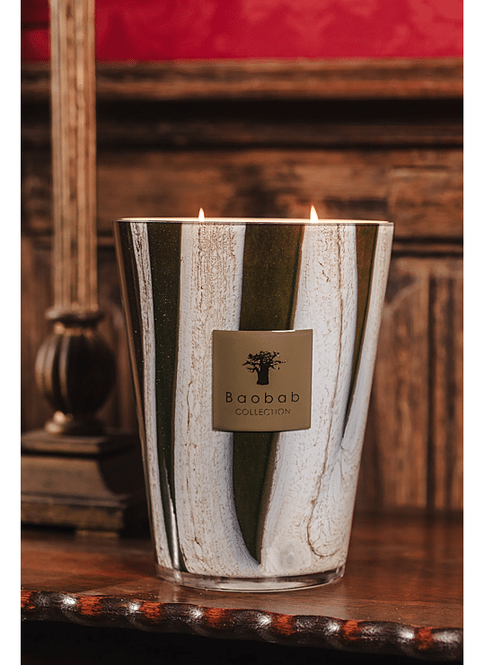 Het glas van de geurkaars Sherwood is versierd met verticale lijnen die lijken op majestueuze boomstammen die naar de hemel reiken. De kaars is diepgroen met kaki-achtige schakeringen, die variëren van bruin tot geel. Ze vangt het licht en komt tot leven met betoverende schitteringen.Sherwood Forest, bekend geworden door de legende van Robin Hood, is een wonderlijke omgeving op het Engelse platteland, waar majestueuze eiken hoog boven je uittorenen als personages uit een roman van Tolkien.