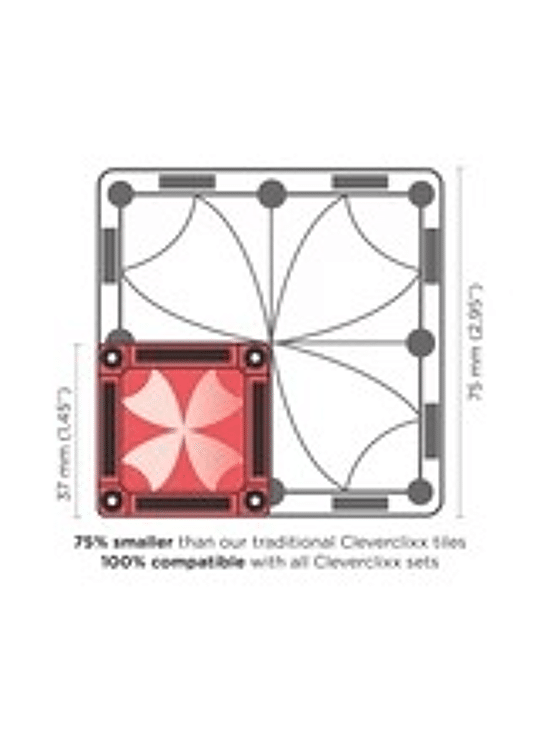 De minitegels moedigen niet alleen urenlang bouwplezier en fantasierijk spel aan, maar ondersteunen ook actief de ontwikkeling van STEAM-vaardigheden (Science, Technology, Engineering, Art en Math). Door te spelen leren kinderen vormen herkennen, structuren bouwen en logisch denken. Bovendien zijn alle Cleverclixx-sets volledig compatibel met elkaar, waardoor deze minipack een perfecte aanvulling is op een grotere verzameling. Een minitegel is ¼ van de grootte van een normale tegel. Nu kun je je creaties verbeteren door ze te combineren! Voeg meer details toe aan je magnetische bouwwerken. Klik, bouw en ontdek – altijd en overal!