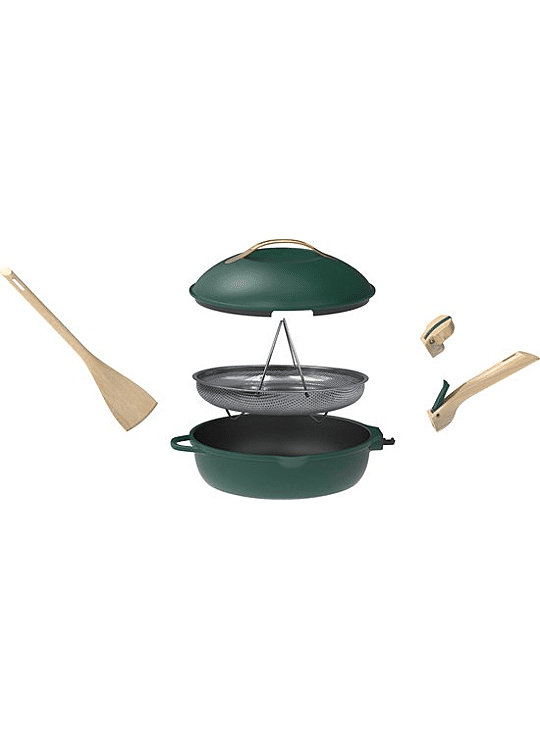 Deze kookpot is zoveel meer dan gewoon een kookpot. Aan de hand van de meegeleverde accessoires kan je bakken, braden, stomen, frituren, een ovenschotel bereiden, en zoveel meer.Bovendien kan deze pot op alle vuren gebruikt worden én zelfs in de oven.