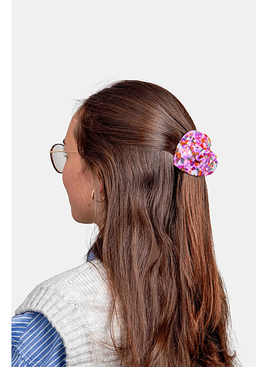 One clip, all the feels. Bursting with color and shaped like a heart, this bold hairclaw is your go-to for fun, flirty, fabulous hair days. For those who like their looks bold, sweet, and a little extra.