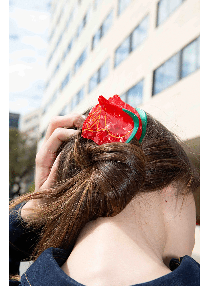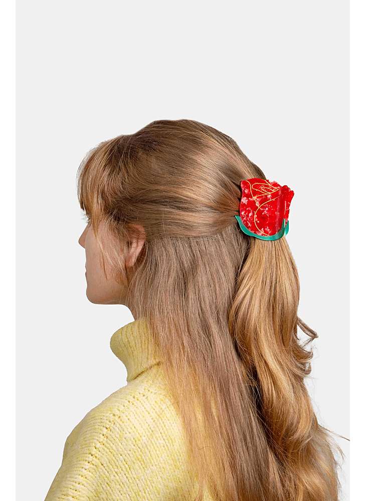 Romance meets retro. This delicate rose hairclaw blooms in your hair, turning every day into a love story. A soft statement for those who love slow fashion, cottagecore, or a touch of poetic drama. Add love to your look—no bouquet required.