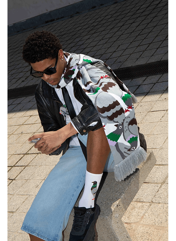 Serve looks like a street-style pro. This pigeon-inspired scarf adds big city attitude and cozy cool to your wardrobe.With big city vibes and unexpected charm, it’s a must-have winter accessory for trendsetters and fashion rebels. Pair it with your favorite coat for an instant statement.