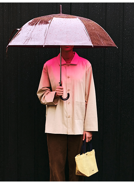 De Canopy Paraplu van HAY houdt je droog én ziet er goed uit. Het ontwerp is eenvoudig en modern, met een gebogen handvat dat prettig in de hand ligt. De waterbestendige kap is gemaakt van 100% gerecycled POE, wat zorgt voor goede bescherming tegen de regen. Het handvat en de punt zijn vervaardigd uit 100% gerecycled PP, waardoor de paraplu stevig en duurzaam is. Daarnaast is de paraplu verkrijgbaar in zowel transparante als gekleurde varianten, waardoor hij makkelijk te combineren is met je outfit. Dankzij het minimalistische en kleurgecoördineerde design is deze paraplu niet alleen praktisch, maar ook stijlvol.