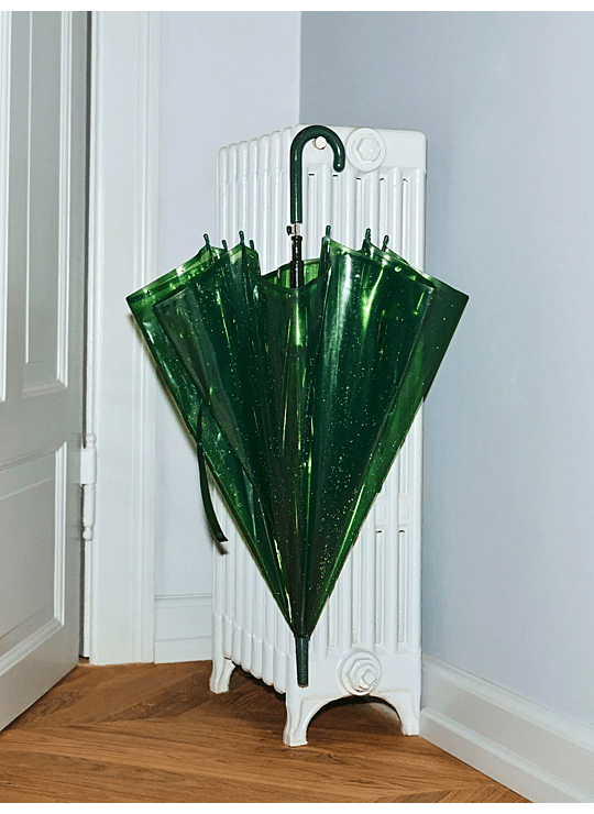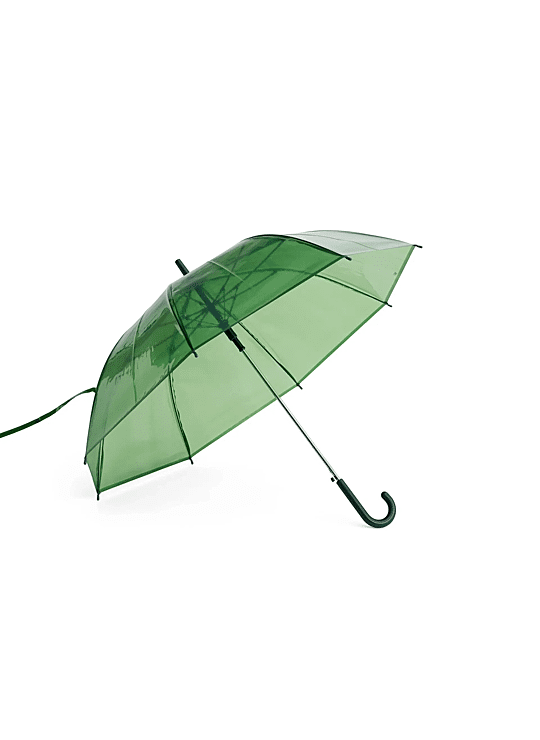 De Canopy Paraplu van HAY houdt je droog én ziet er goed uit. Het ontwerp is eenvoudig en modern, met een gebogen handvat dat prettig in de hand ligt. De waterbestendige kap is gemaakt van 100% gerecycled POE, wat zorgt voor goede bescherming tegen de regen. Het handvat en de punt zijn vervaardigd uit 100% gerecycled PP, waardoor de paraplu stevig en duurzaam is. Daarnaast is de paraplu verkrijgbaar in zowel transparante als gekleurde varianten, waardoor hij makkelijk te combineren is met je outfit. Dankzij het minimalistische en kleurgecoördineerde design is deze paraplu niet alleen praktisch, maar ook stijlvol.