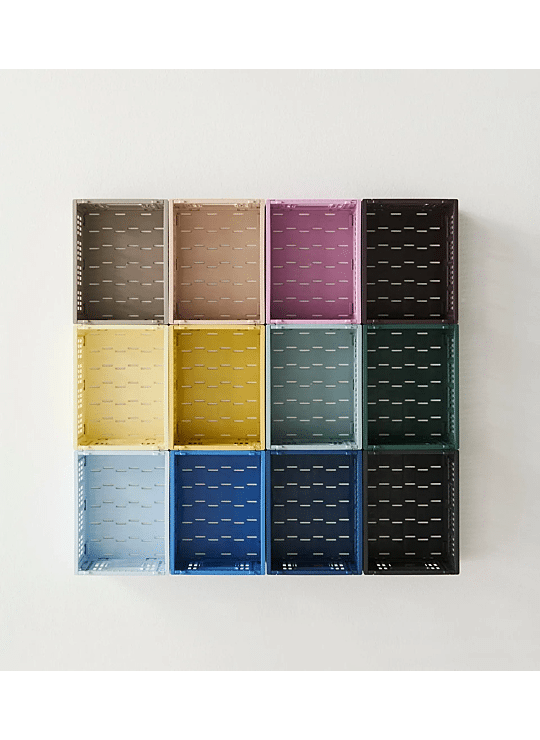 De HAY Colour Crate Mini is een serie kleurrijke opbergboxen met een opvallend, geperforeerd ontwerp. Deze compacte crates, gemaakt van 100% gerecycled post-consumer plastic, zijn de kleinste in de Colour Crate reeks. Ze passen gemakkelijk in de grotere crates en kunnen stevig op elkaar gestapeld worden. Dankzij het multifunctionele ontwerp zijn ze ideaal voor het opbergen en organiseren van kleinere items op planken, tafels of in kasten. Zo creëer je een opgeruimde en georganiseerde leefruimte, terwijl je bijdraagt aan een duurzamere wereld.