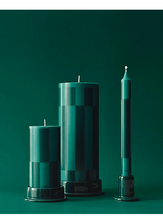 HAY COLUMN CANDLE SMALL GREEN WITH DARK GREEN LARGE CHECK