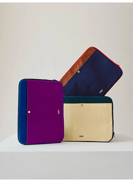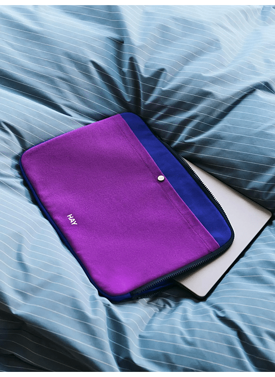De Multi Laptophoes van HAY is ontworpen om je laptop veilig én stijlvol op te bergen. De buitenkant is gemaakt van organisch katoen en bevat een extra vakje voor kabels of accessoires. Aan de binnenkant zorgt een zachte sponsvulling voor bescherming tegen schokken. Dankzij de extra lange rits haal je je laptop er moeiteloos uit. De hoes is geschikt voor laptops van 13 en 14 inch en is verkrijgbaar in drie kleurcombinaties.