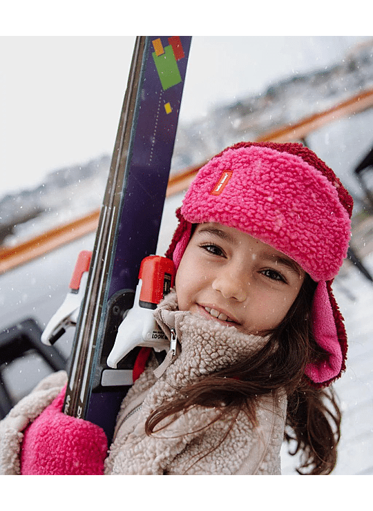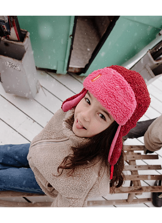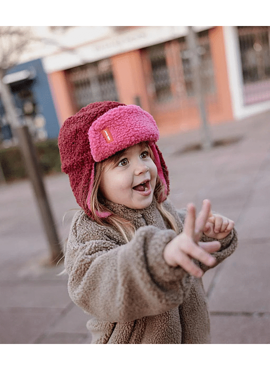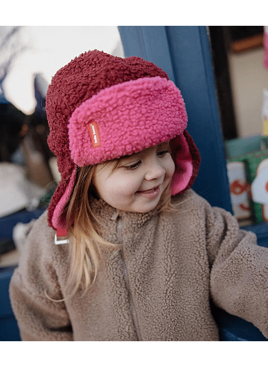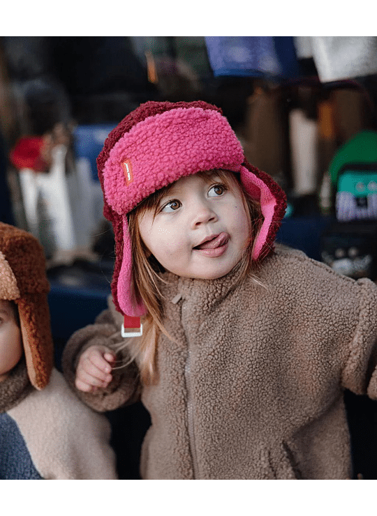 Val voor de Ushanka kind en baby, Cozy Tara. Tweekleurig, ultrazachte fleecevoering, praktische bandjes voor een perfecte pasvorm, alles om van te houden. Een ideaal winteraccessoire voor kinderen, te combineren met onze wanten met dezelfde Naam