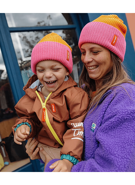 Val voor de Muts kind en baby Flow Indie, vanaf 9 maanden. 100% Oeko-Tex bio katoen, zonder pompon, maar met stijl. Ook voor volwassenen. Het perfecte boefje-ouder duo voor koudere dagen.