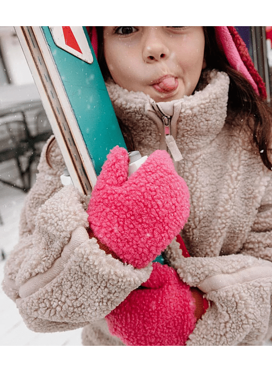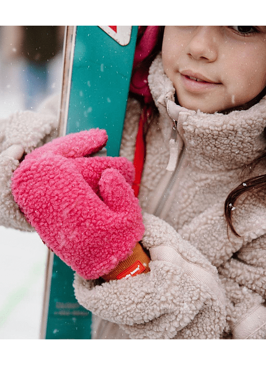De Wanten kind en baby, Heaty Tara, zijn een echte hit bij kids met hun teddystof look. Fleecevoering, tweekleurig, matching ushanka voor een iconische winterlook.