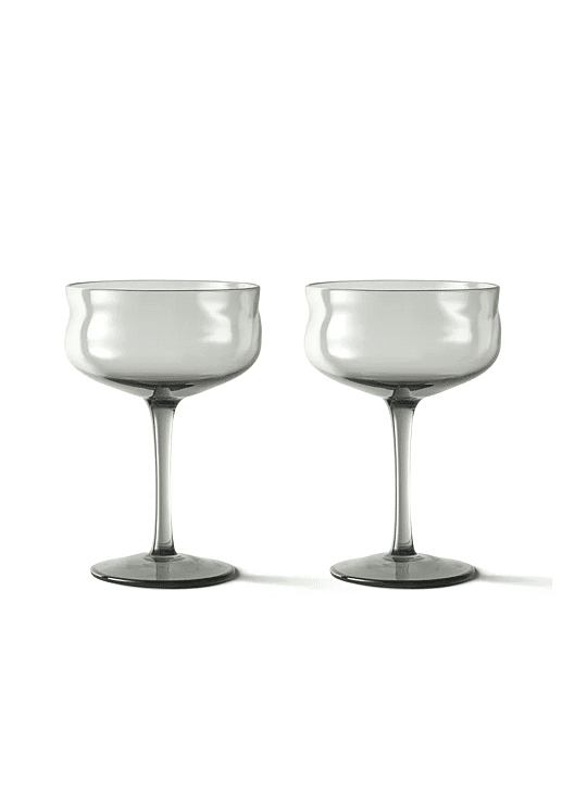 Deze coupes (260 ml) zijn ideaal voorsprankelende cocktails, verfijnde desserts of een ontspannen avonddrankje. Dezachte, vloeiende vorm ligt prettig in de hand en vangt de beweging van water.