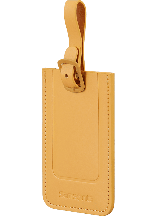- Klassiek, rechthoekig bagagelabel met gebosseleerd Samsonite logo.