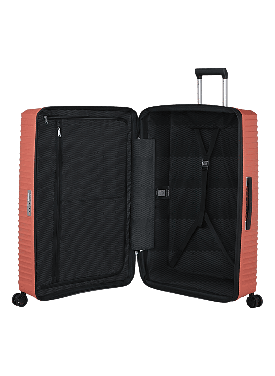 Kies voor comfort met Upscape! Geniet van zorgeloos reizen dankzij het lichte gewicht, de schokabsorberende suspensie wielen en de verwijderbare en wasbare voering. De handige uitbreidbaarheid en de opvallende zilveren details zorgen voor extra reisplezier.